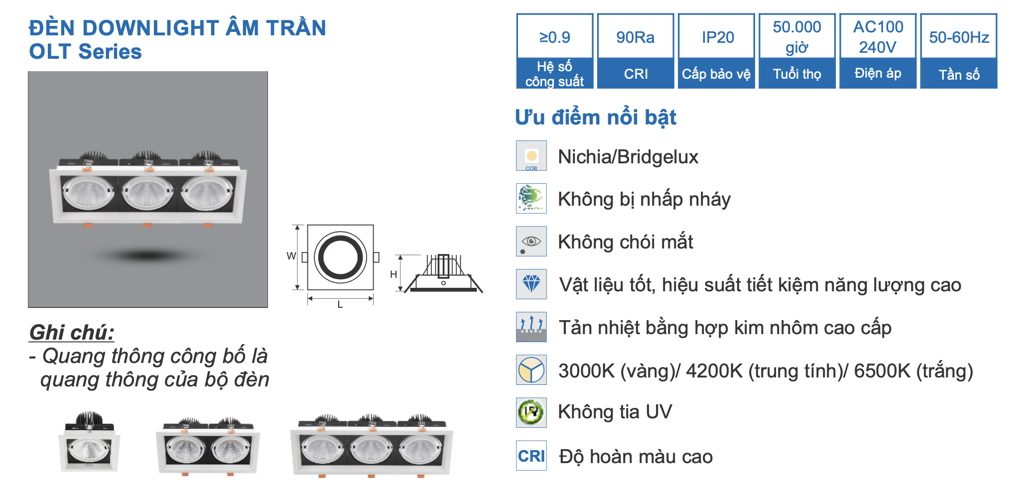 Thông Số Kỹ Thuật Của Đèn Downlight Âm Trần 2x15W Paragon OLT215L30
