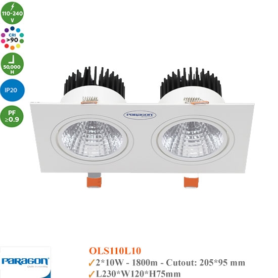 Thông Số Kỹ Thuật Của Đèn Downlight Âm Trần Đôi 2x10W Paragon OLS210L20