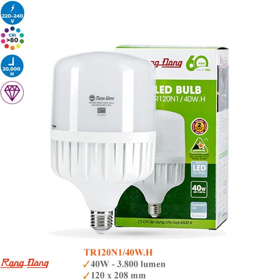 Thông Số Kỹ Thuật Của Đèn Led Bulb Trụ Nhôm Nhựa 40W Rạng Đông TR120N1/40W.H
