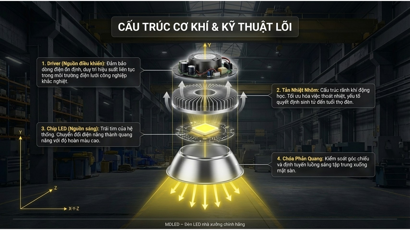 👉 Đây là những yếu tố quyết định độ bền và hiệu suất của đèn.