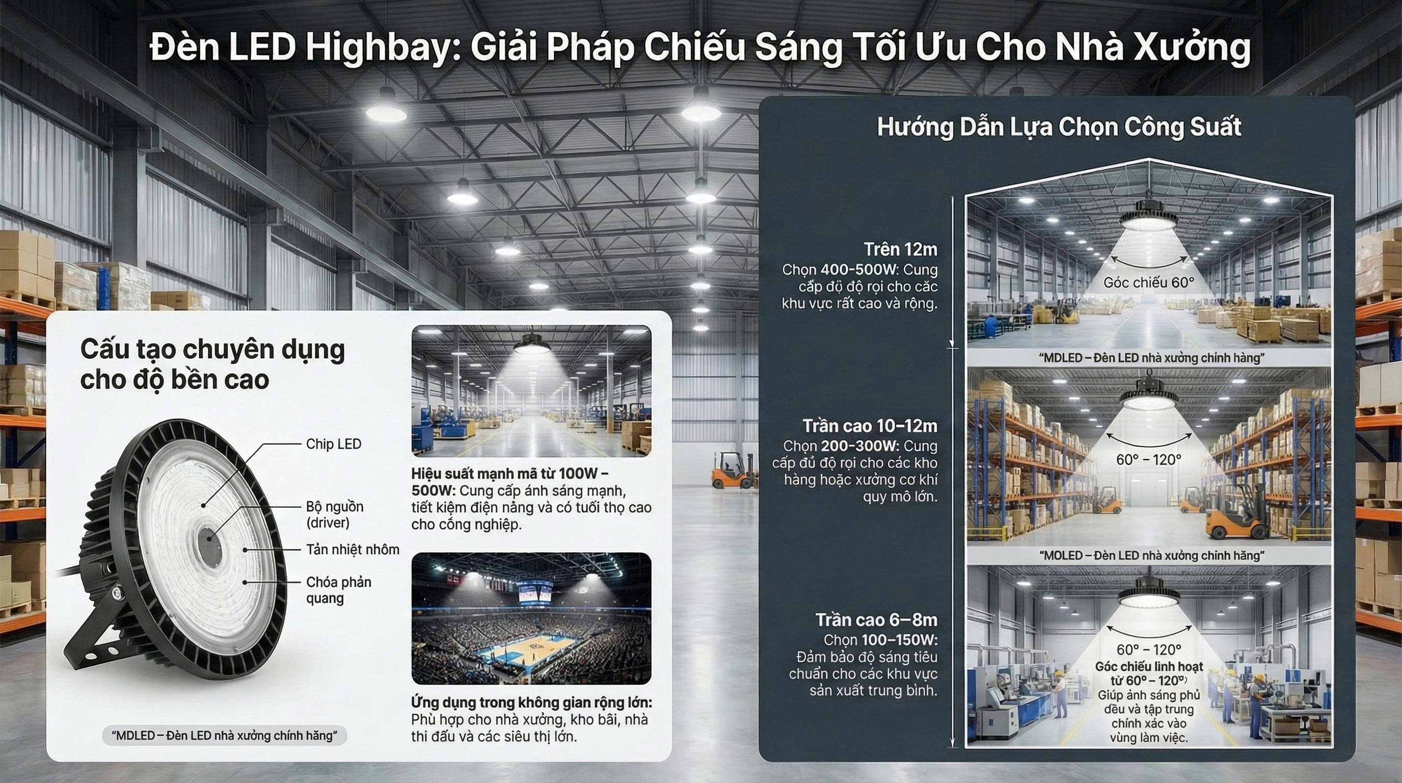 👉 Đèn Highbay là lựa chọn tối ưu vì: