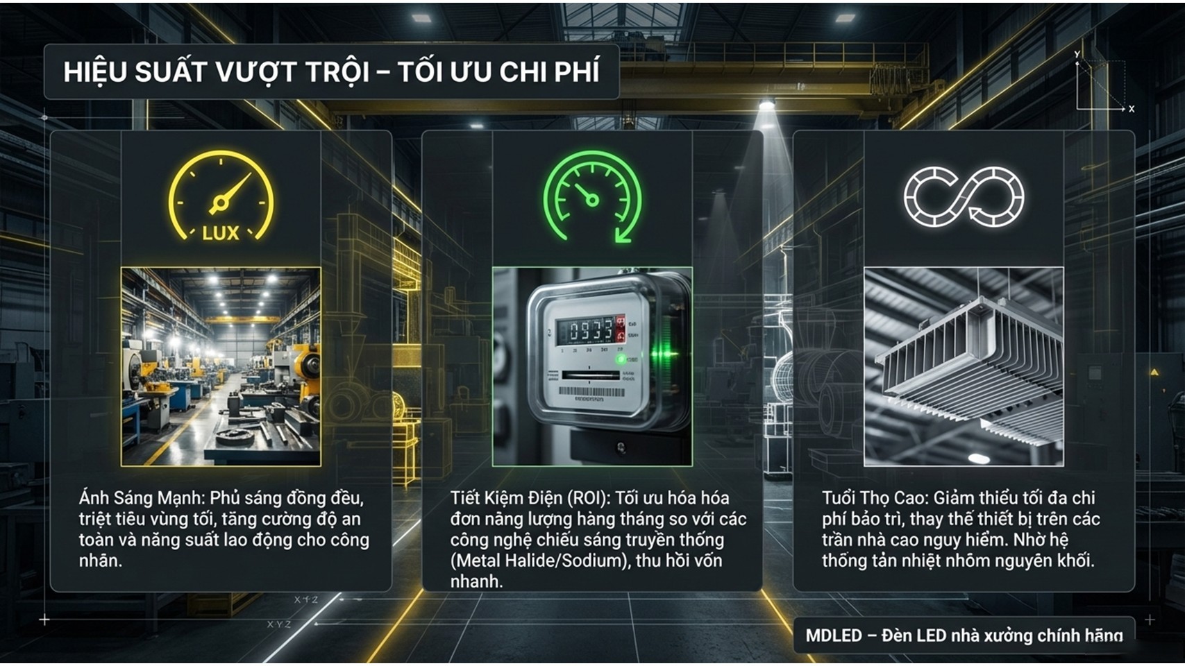 Đèn LED Highbay tại MDLED sở hữu nhiều ưu điểm vượt trội: