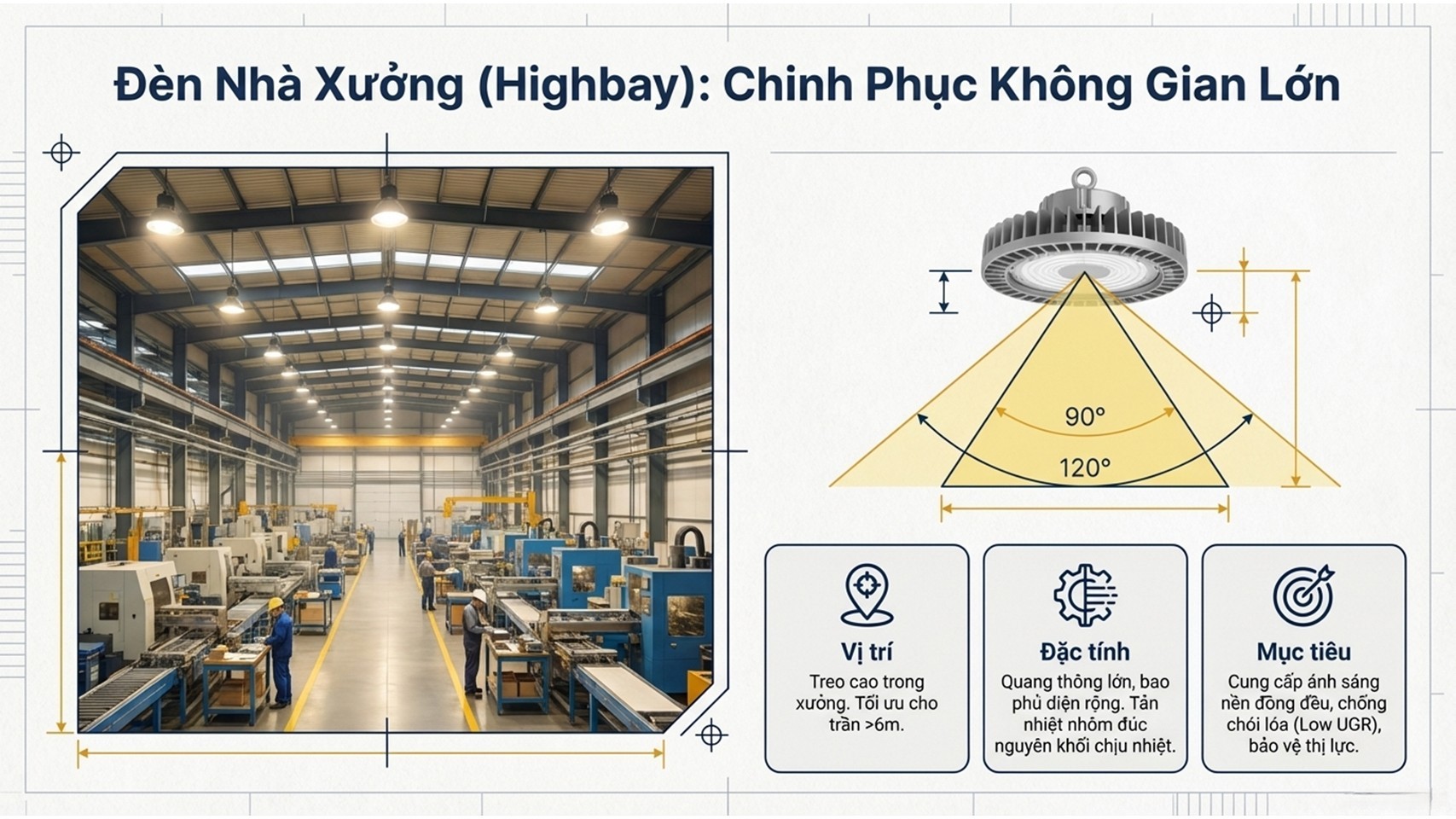 1. Đèn nhà xưởng (Highbay) – Giải pháp chiếu sáng chính