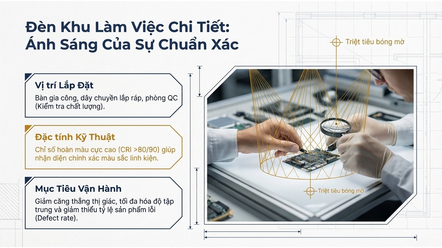 Đối với các khu vực cần độ chính xác cao như: lắp ráp, kiểm tra sản phẩm, gia công